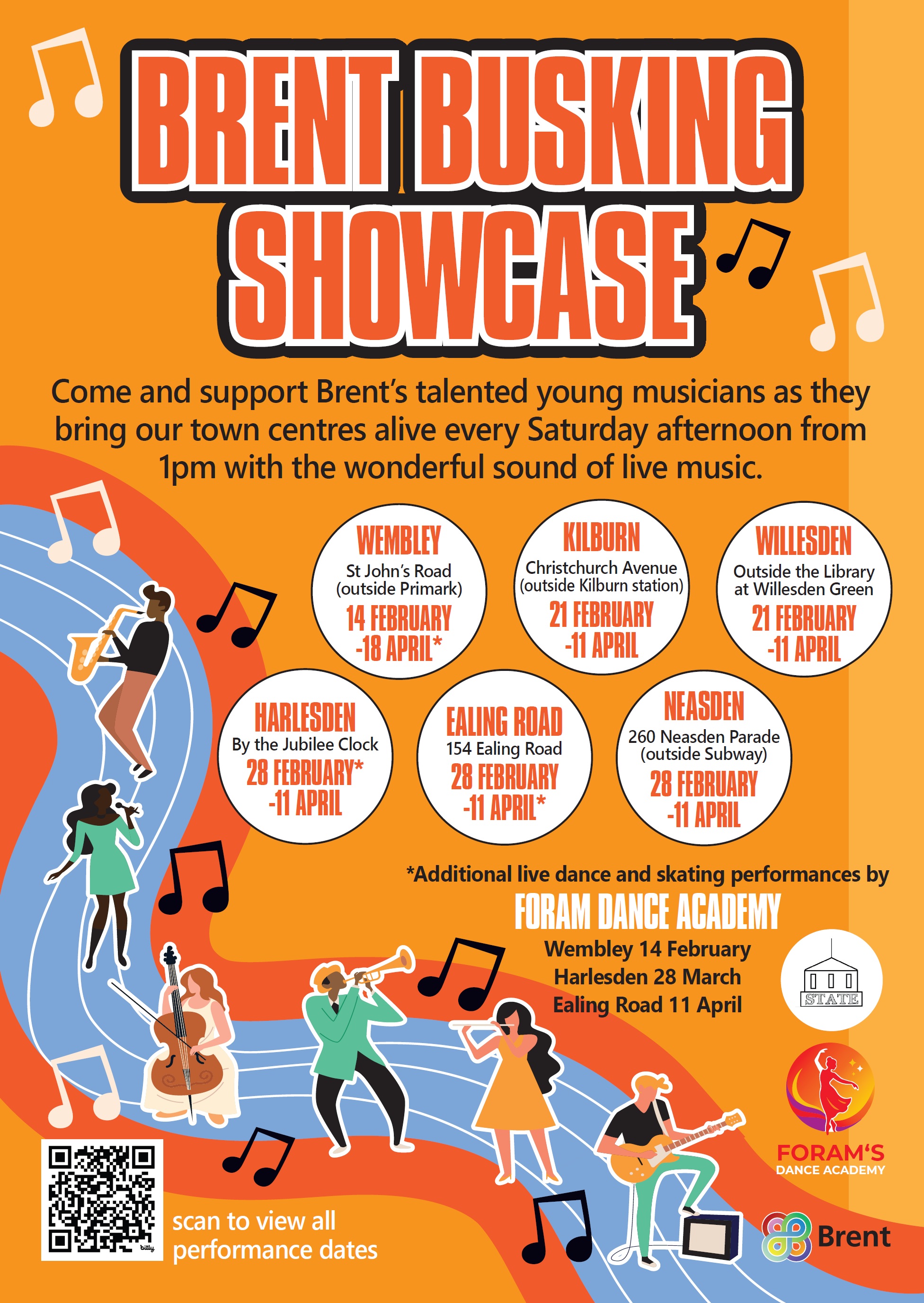 Buskers’ Corners is an exciting project, funded by Brent Council’s Neighbourhood CIL funds, to activate our vibrant town centres with live music performances. We’re providing high-visibility spaces for talented young musicians and dancers aged 14-25 to perform and showcase Brent’s rich musical and cultural offering.